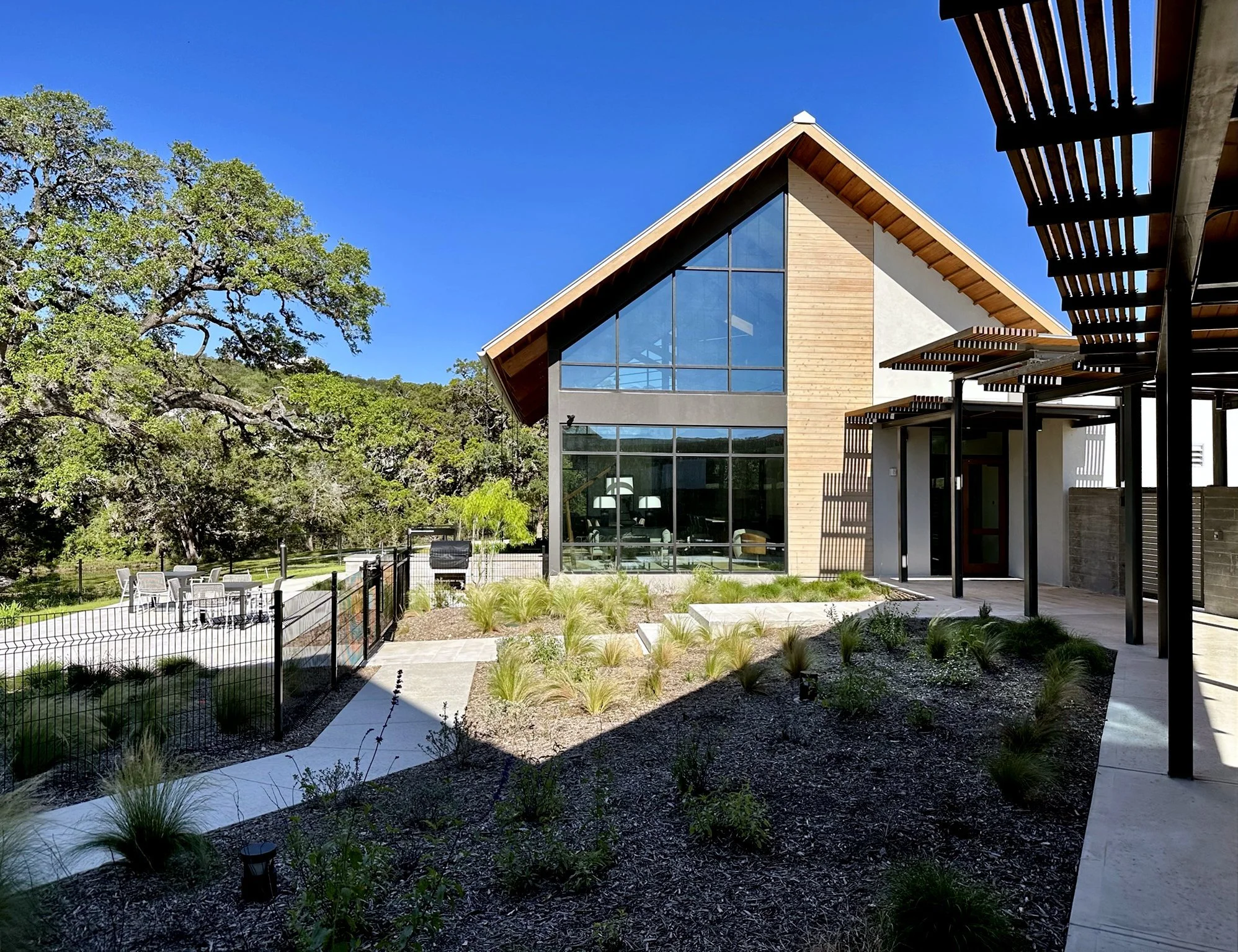 Thoughtfully integrated into the landscape, the design is sensitive to the surrounding heritage live oak trees, preserving their expansive canopies while enhancing the natural beauty of the site. Nestled alongside a spring-fed creek, the Amenity Center offers a peaceful retreat where residents and guests can unwind, recharge, and escape to an elevated environment without leaving the property.